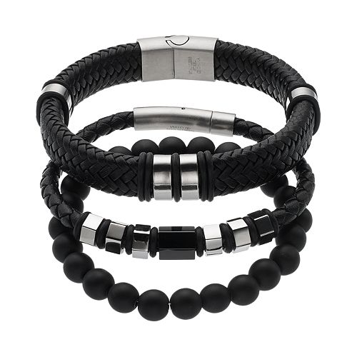 from 1913 Men s 3 pc Stainless Steel & Black Leather Bracelet Set. Source Image: www.kohls.com. Visit this site for details: www.kohls.com