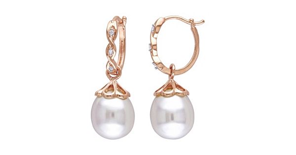 from 10k Rose Gold Freshwater Cultured Pearl and Diamond Accent