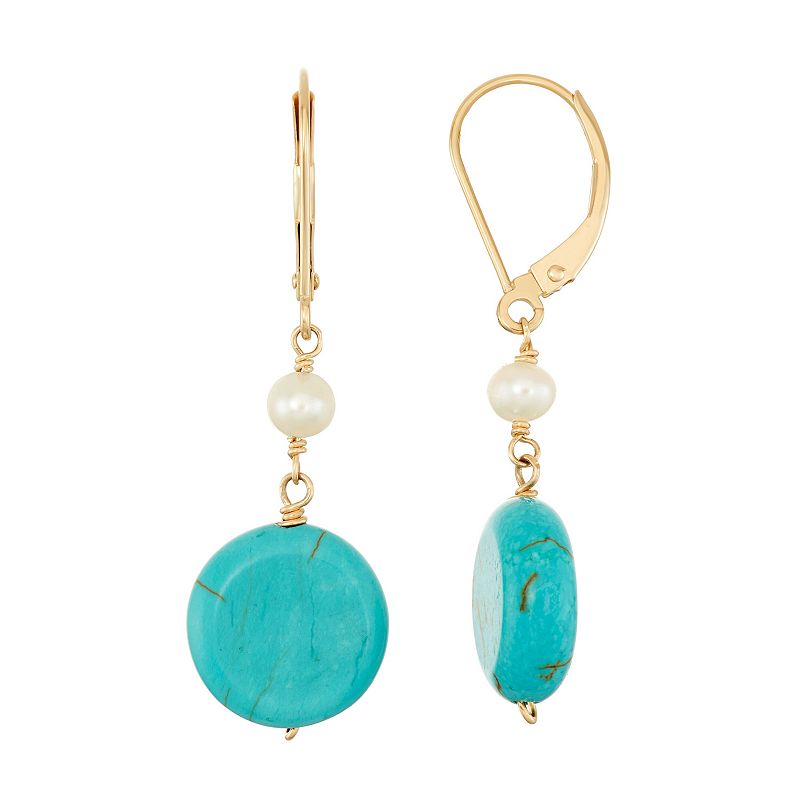 6. 14k Gold Turquoise & Freshwater Cultured Pearl Drop Earrings
