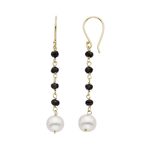 from Freshwater Cultured Pearl & Black Spinel 14k Gold Linear