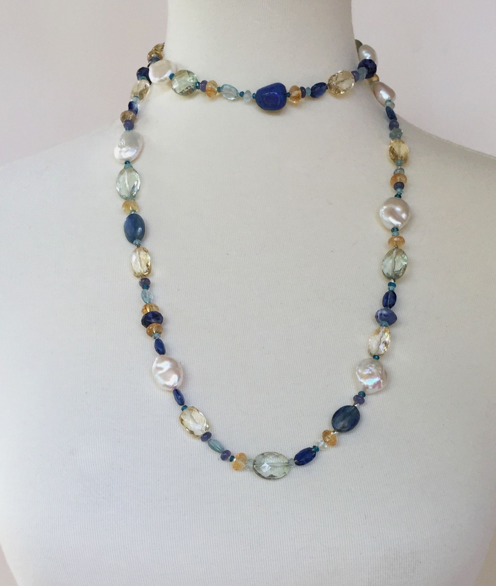 from Pearl and Blue Semi Precious Stone Long Necklace with. Source Image: www.luxify.com. Visit this site for details: www.luxify.com