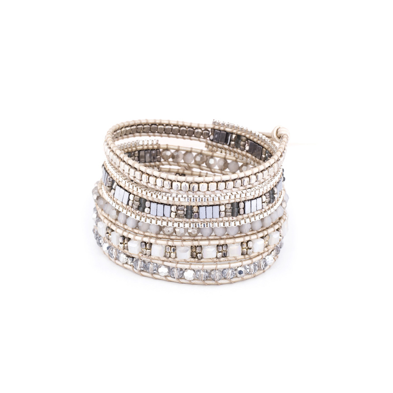 - 10. Beaded Leather Wrap Bracelet in Silver & Cream by Nakamol