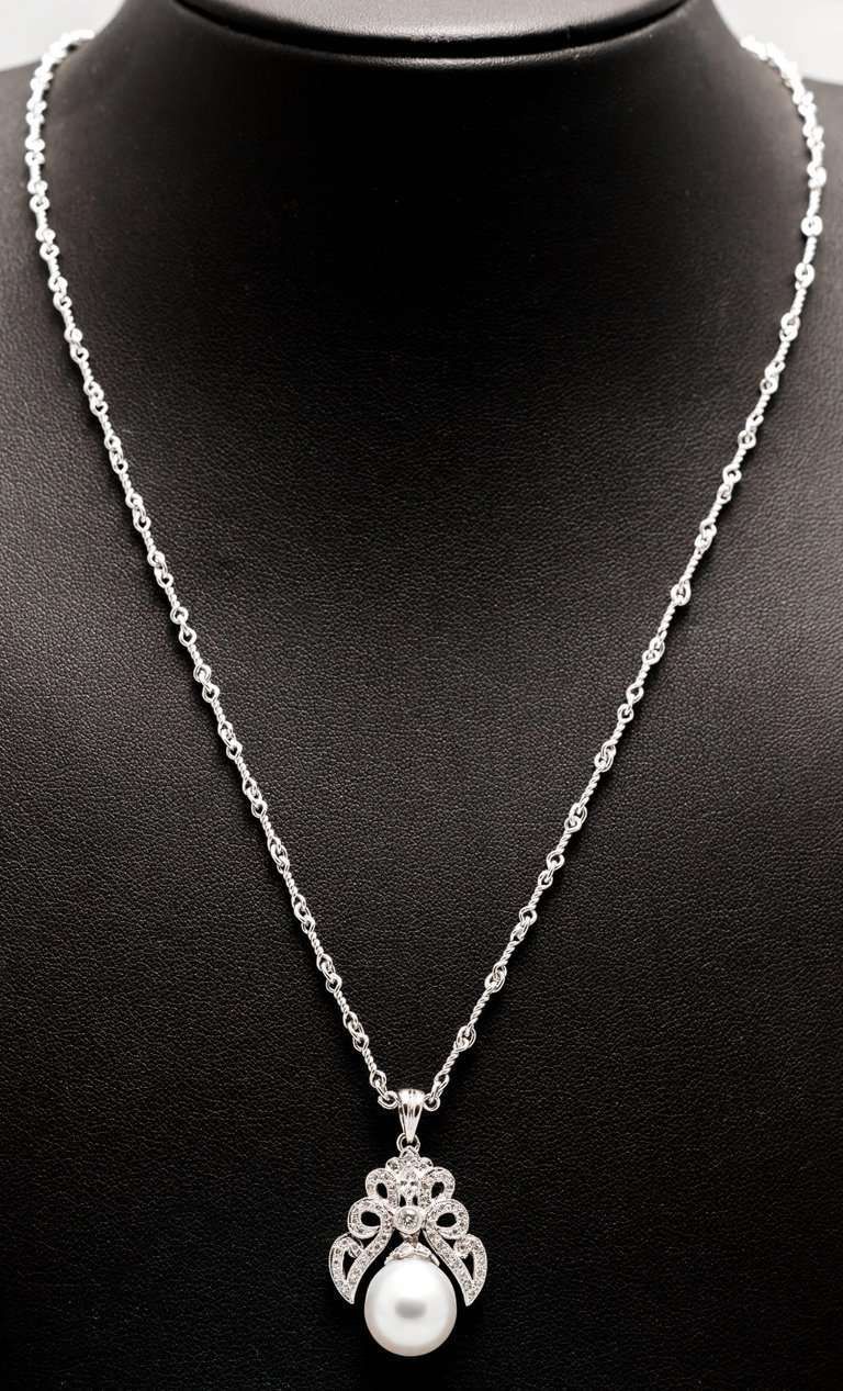 1. Freshwater Cultured Pearl and Diamond Pendant in 14k White