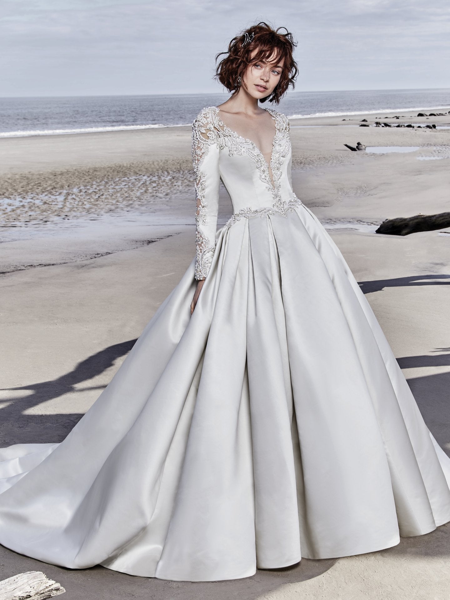 from Long Sleeved V neck Crystaled Lace And Satin Ball Gown. Source Image: www.kleinfeldbridal.com. Visit this site for details: www.kleinfeldbridal.com