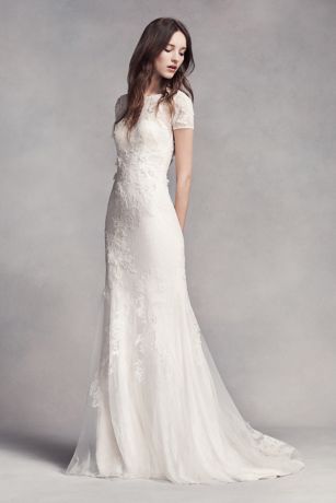 from White by Vera Wang Short Sleeve Lace Wedding Dress. Source Image: www.davidsbridal.com. Visit this site for details: www.davidsbridal.com