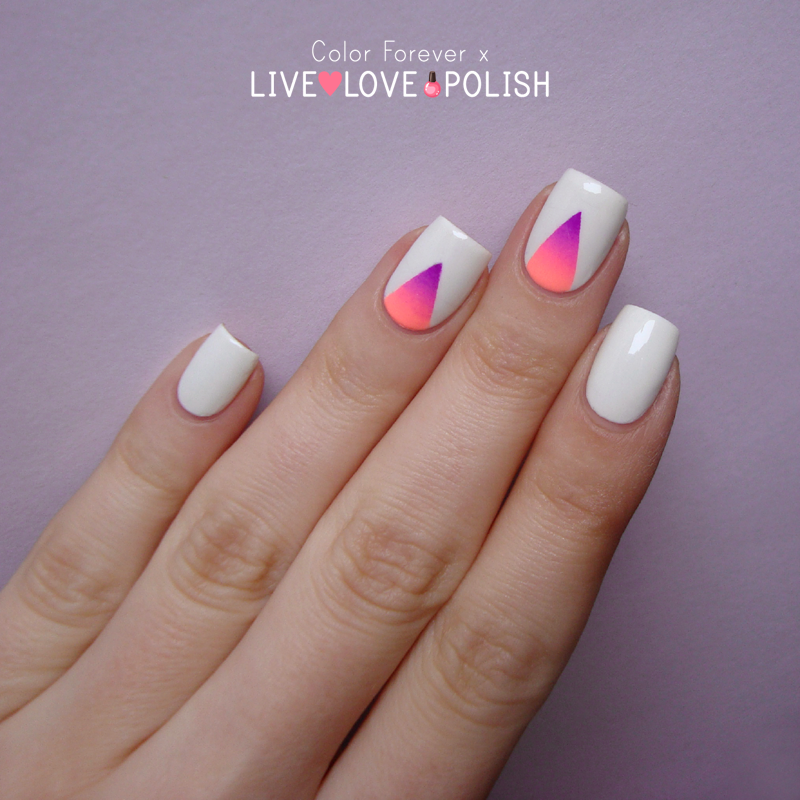 14. Color Forever Gra nt triangle nail art with Live Love